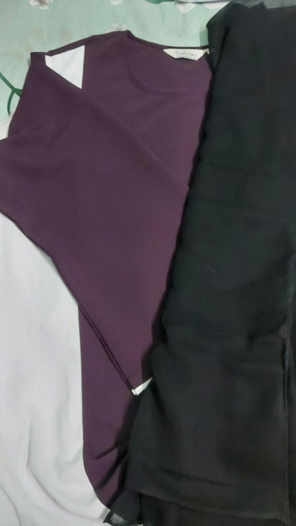 Indulge in the refined charm of our exquisite two-tone abaya, a harmonious blend of contemporary style and timeless modesty. Rendered in a rich maroon, this abaya features a striking white panel that gracefully elongates the silhouette, exuding sophistication. The flowing design ensures comfort and fluidity, while the delicate piping on the sleeves adds a touch of polished detail. Paired with a crisp white hijab, this abaya is perfect for formal gatherings or special occasions, effortlessly elevating your wardrobe with its understated luxury. Step into a world of poise and grace with this captivating piece.